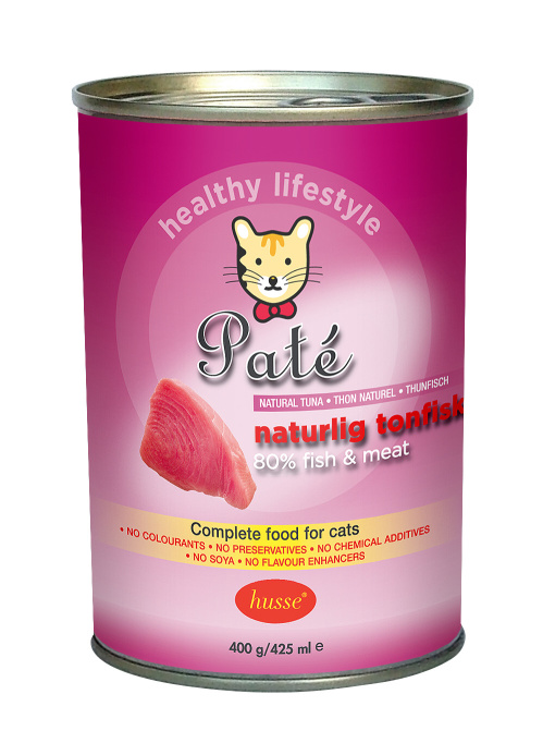 Paté (400g) - velmi chutná paštika vyrobena z kvalitního čerstvého masa nebo ryb (80 % masa a ryb). V provedení kuřecí játra, kachna&losos, tuňák a šunka&králík.